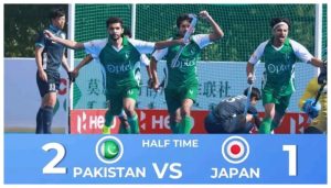 پہلے کواٹر میں ندیم احمد نے گول کرکے برتری حاصل کی جب کہ دوسرے کواٹر میں جاپان نے گول کرکے مقابلہ برابر کردیا۔