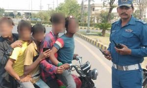 حکام کے مطابق ہیلمٹ نہ پہننے اور لین لائن کی مسلسل خلاف ورزیوں پر موٹرسائیکل سوار کو 55200 روپے جرمانہ عائد کیا گیا۔