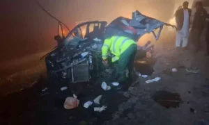 حادثے میں کار سوار فیملی کے چھ افراد موقع پر جاں بحق جبکہ تین افراد زخمی ہوگئے۔