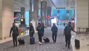 کپتان فاطمہ ثناء کی قیادت میں ویمن کرکٹ ٹیم دبئی انٹرنیشنل ایئرپورٹ سے ہوٹل پہنچی۔