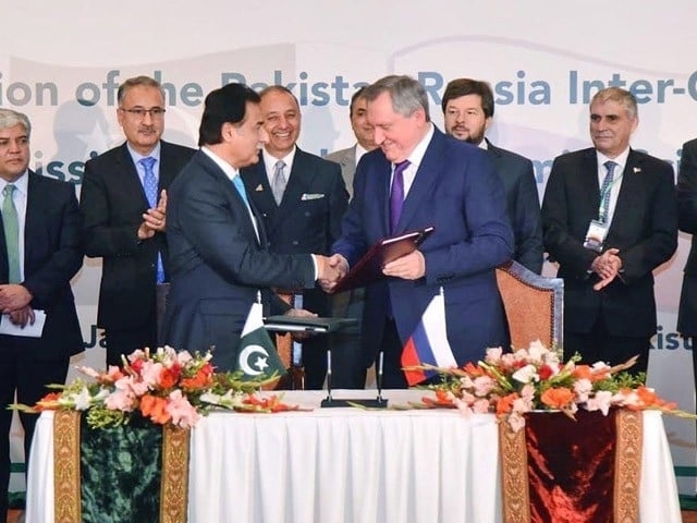 اسلام آباد: پاکستان نے روس سے خام تیل، پیٹرول اور ڈیزل درآمد کرنے کا فیصلہ کیاہے۔روس سے خام تیل کی خریداری اور پاکستان اسٹریم گیس پائپ لائن سے متعلق اسٹرکچرکو مارچ میں حتمی شکل دی جائےگی ۔ پاکستان اور روس کے درمیان تین معاہدے طے پا گئے ہیں۔پاکستان اور روس کے درمیان کسٹم معاملات میں تعاون سے متعلق معاہدے، پاک روس تجارتی سامان کی کسٹمز ویلیو پر دستاویز اورڈیٹا کے لین دین کے معاہدے پربھی دستخط کیے گئے۔روس اور پاکستان کے درمیان بین الحکومتی کمیشن کے اجلاس کے بعد جاری کردہ مشترکہ اعلامیے اور میڈیا سے گفتگو کرتے ہوئے وزیر توانائی مصدق ملک نے کہا کہ ہم مارچ میں روس سے خام تیل، پیٹرول اور ڈیزل درآمد کرنا شروع کردیں گے، فی الحال پاکستان کو دینے کے لیے روس کے پاس ایل این جی نہیں ہے،پاکستان روس سےاپنی مجموعی ضرورت کا 35فیصد خام تیل درآمد کرنا چاہتا ہے۔پاکستان اور روس کے بین الحکومتی کمیشن کے آٹھویں اجلاس کا مشترکہ اعلامیہ بھی جاری کردیا گیا ہے جس کے مطابق فریقین نے تجارت، سرمایہ کاری سمیت مختلف شعبوں میں تعاون بڑھانے پراتفاق کیاہے ، تیل اورگیس کے تجارتی لین دین کا ایسا ڈھانچہ بنائیں گے کہ دونوں ملکوں کو فائدہ پہنچے، روس اورپاکستان نے توانائی تعاون کے لیے جامع منصوبہ پرکام کرنے پر اتفاق کیا ہے۔اعلامیے میں کہا گیا ہےکہ پاکستان اسٹریم گیس پائپ لائن پراجیکٹ کے جامع انفراسٹرکچرپرغورکرنے پربھی اتفاق کیا گیا ہے جب کہ پاکستان اسٹریم گیس پائپ لائن سے سستی گیس کی فراہمی کے لیے پائیدارانفراسٹرکچربنانے پر غور کیا گیا۔اعلامیے کے مطابق اجلاس میں پاکستان اور روس کے درمیان کسٹم معاملات میں تعاون سے متعلق معاہدے، پاک روس تجارتی سامان کی کسٹمز ویلیو پر دستاویز اورڈیٹا کے لین دین کے معاہدے پربھی دستخط کیے گئے۔مشترکہ اعلامیے میں بتایا گیا کہ پاک روس ایروناٹیکل مصنوعات کی فضائی قابلیت پرکام کرنے کا معاہدہ بھی طے پاگیا ہے۔
